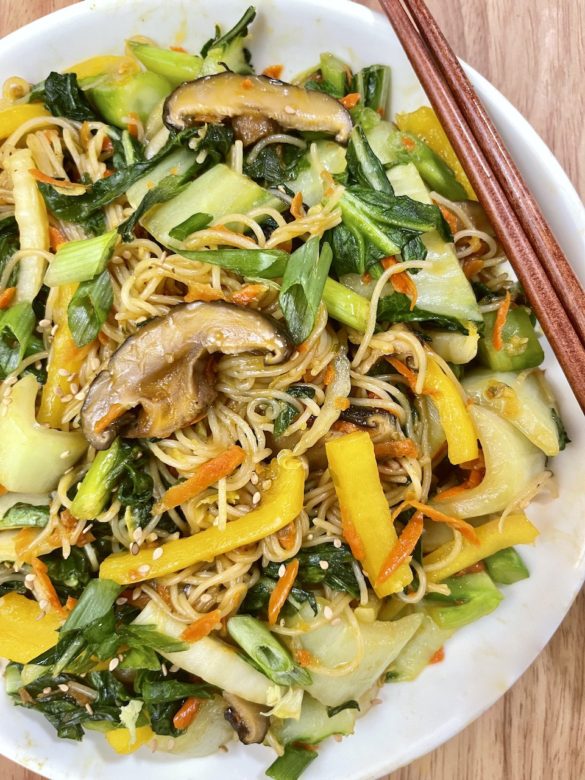 This dish can be modified to your preference with noodles, vegetables or protein you have on hand. You can also omit the protein as I have to serve as a side for the week. To add protein, refer to the Easy Lo Mein recipe link above for the instructions.