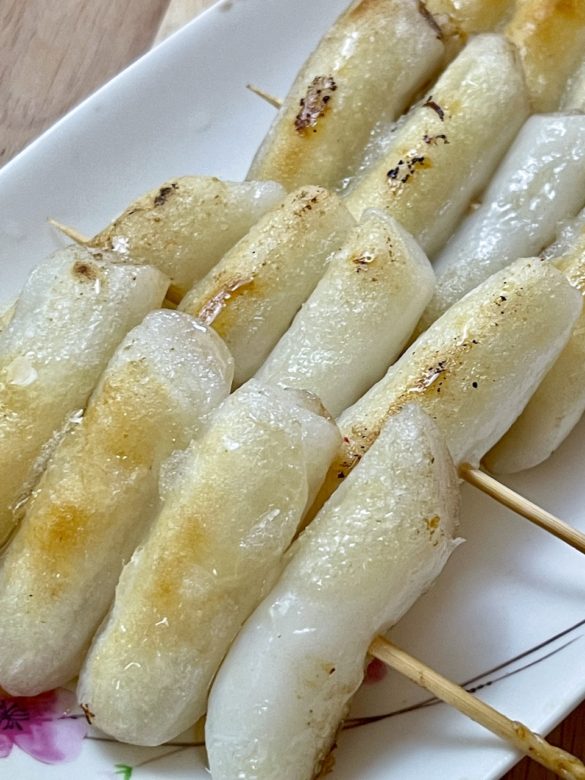 If you prefer it non crispy or without the skewers, sauté the softened rice cakes in some butter until soft, then stir in the honey.