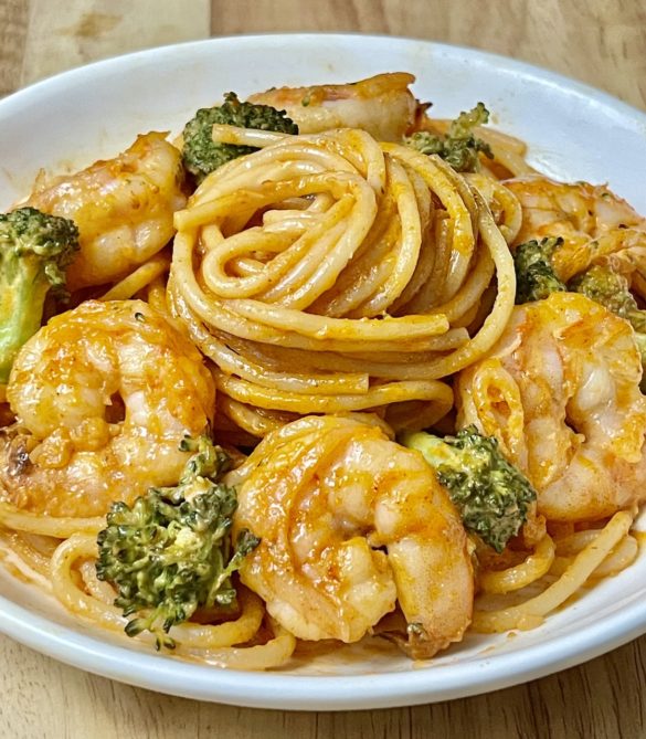 Shrimp rose pasta is a popular Korean pasta but not because it’s made with rosé wine. Rose pasta is to describe the color of the pasta made with a blend of tomato sauce and heavy cream. If you love alfredo pasta, but find it too rich, this is a great option as the tomato helps balance the richness of the cream.