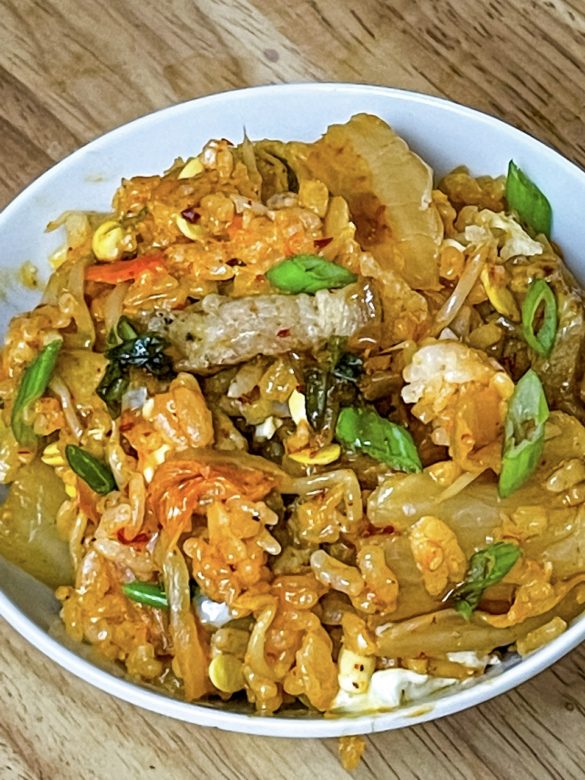 Kongnamul means soybean sprouts and Bap is means rice. The soybean sprout adds a nutty flavor to the rice with the meat and kimchi creating a delicious one pot meal. If you love bibimbap, you’ll love this simplified version.