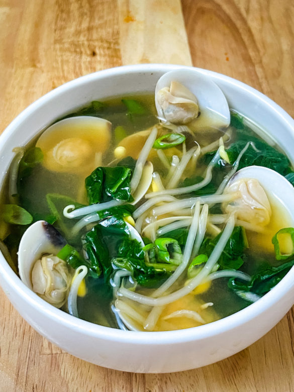 If you grow up in a Korean household, you’ve probably grew up with soybean paste soup with spinach and clams (Sigeumchi jogae doenjang guk) on the dinner table. This soup is simple to make and so comforting on a cold day.